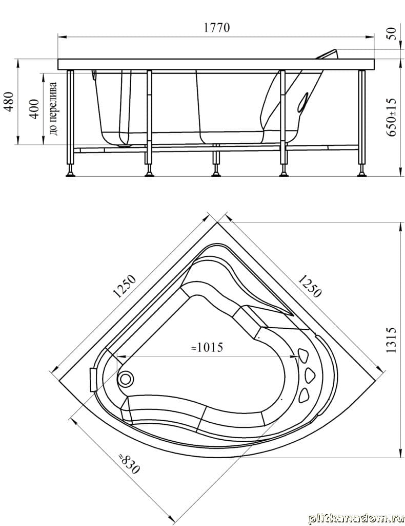 Vanessa Alethea Акриловая ванна 125х125, фронтальная панель, каркас