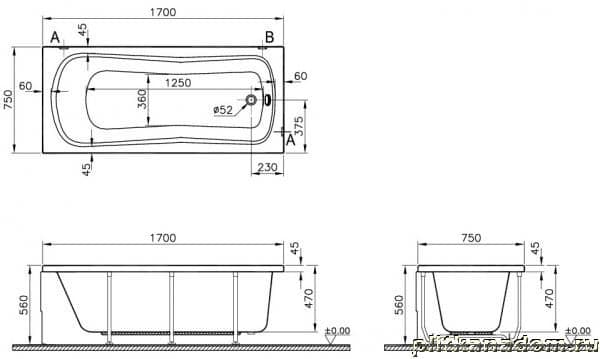 Vitra Comfort 52330001000 Прямоугольная ванна 170х75