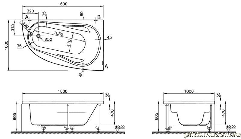 Vitra Comfort 52690017000 Ванна правая D.Soft+подсветка 160х100