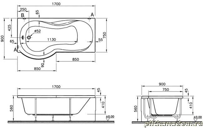Vitra Delphi 50460016000 Ванна 170x75 правая A.Maxi+подсветка
