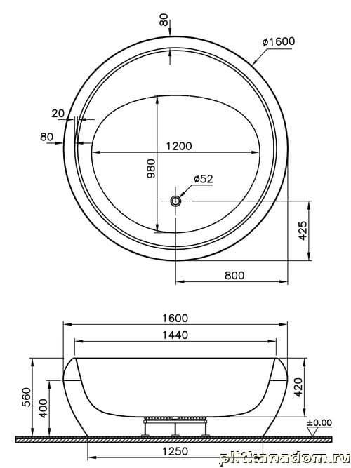 Vitra Istanbul 52980017000 Ванна круглая 160+ножки+крепежи