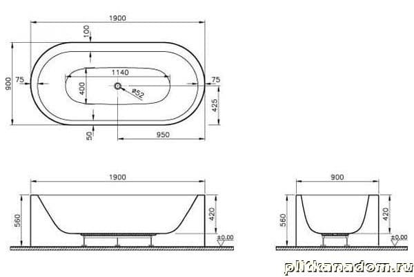 Vitra Istanbul 53000001000 Ванна овальная 190x90 +сифон+ножки