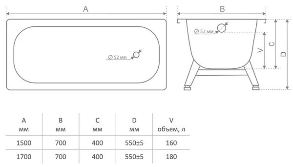 ВИЗ Tevro Ванна T-72902 170х70