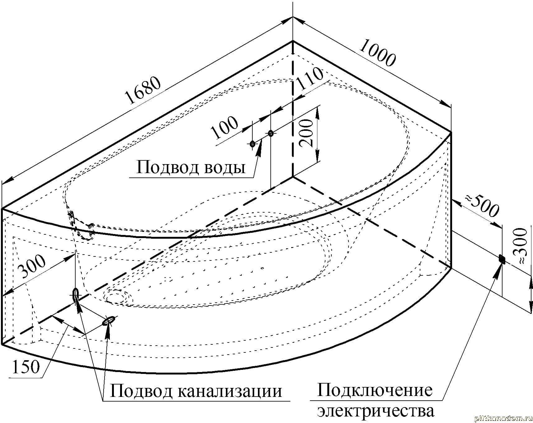 Wachter Bergamo Гидромассажная ванна 168х100 правосторонняя, фронтальная панель, каркас, слив-перелив, система гидромассажа (6 джет белые)