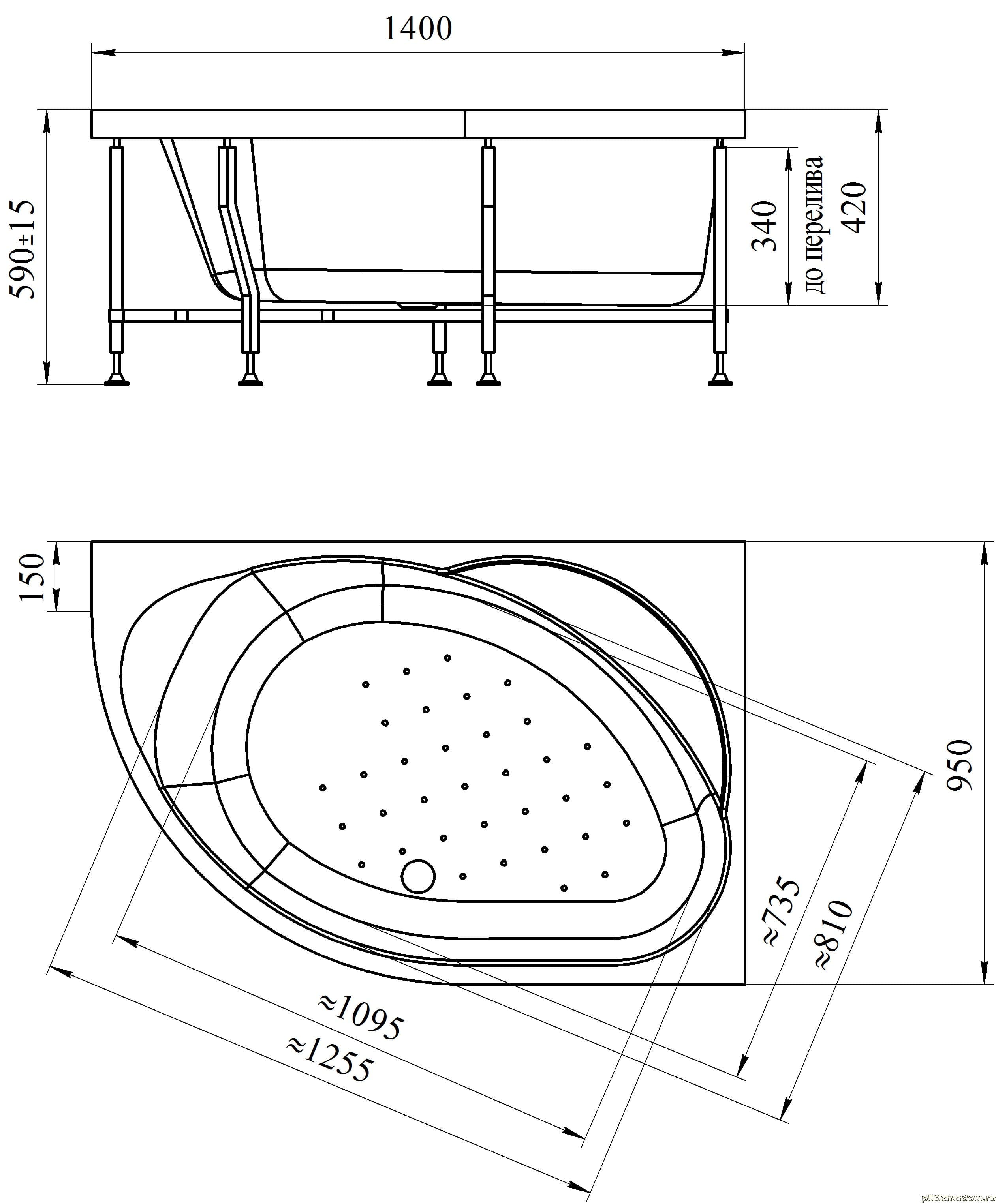 Wachter Melani Гидромассажная ванна 140х95 правосторонняя, фронтальная панель, каркас, слив-перелив, система гидромассажа (6 джет хром)